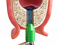 Высокая скорость сверления с постоянным орошением позволяет быстро и безопасно сформировать ложе имплантата, предупреждая повреждение слизистой оболочки.